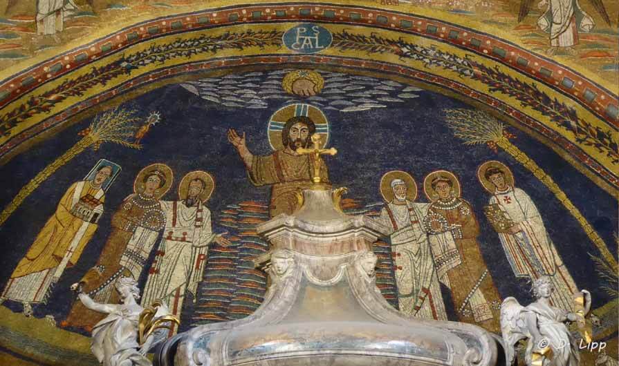 Auch die Päpste des Frühmittelalters hatten kein geringes Selbstwertgefühl. Da hat sich so mancher schon zu Lebzeiten ganz ohne falsche Bescheidenheit neben Aposteln und Heiligen abbilden lassen. Und Papst Paschalis hat auch gleich seiner Mutter einen Heiligenschein verpasst. Aber, Hand aufs Herz, machen das nicht alle italienischen Männer?